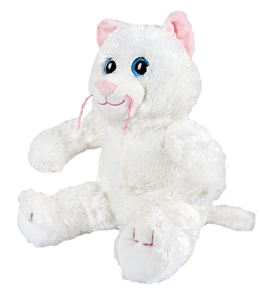 “Marshmallow” the Cat (16″) This bear has plastic eyes.
